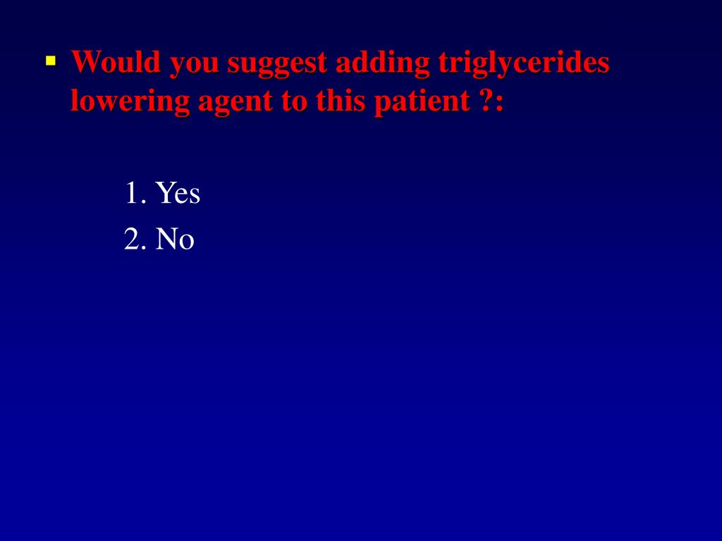Would you suggest adding triglycerides lowering agent to this patient ?: 1. Yes 2. No