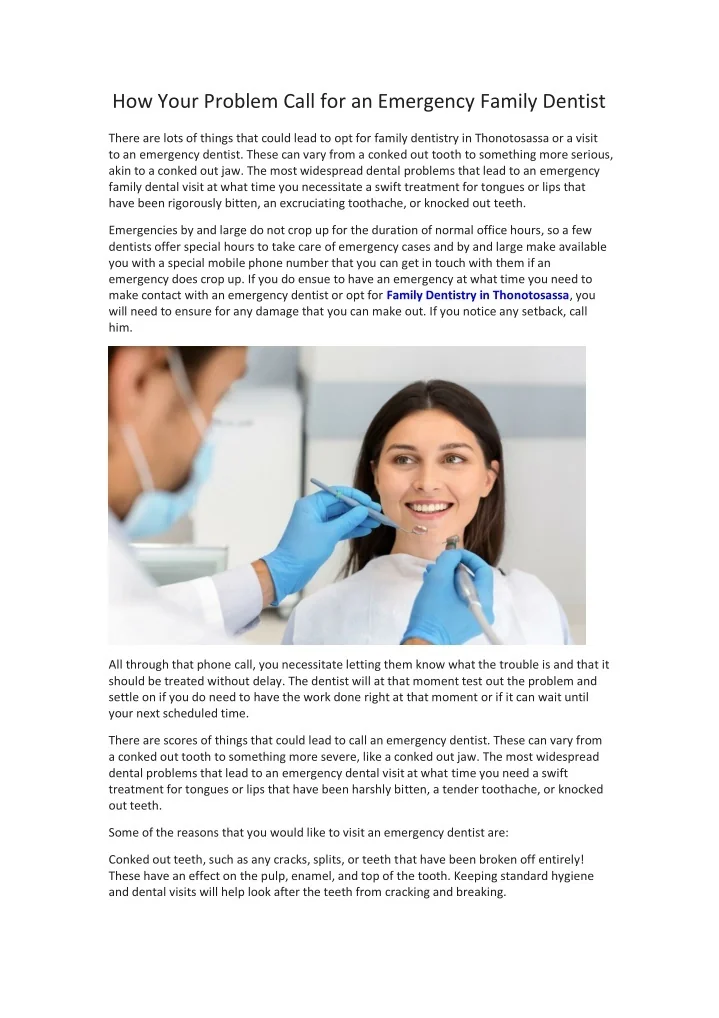 If you do ensue to have an emergency at what time you need to make contact with an emergency dentist or opt for Family Dentistry in Thonotosassa, you will need to ensure for any damage that you can make out.