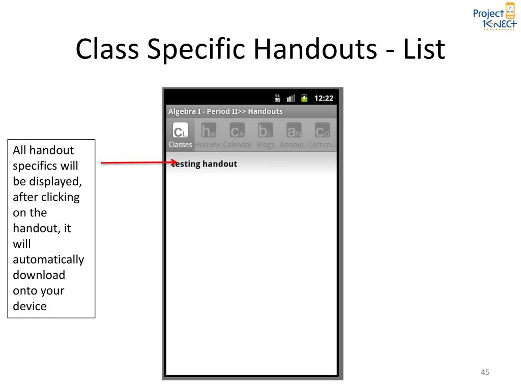Class Specific Handouts - List All handout specifics will be displayed, after clicking on the handout, it will automatically download onto your device