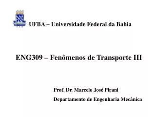 UFBA – Universidade Federal da Bahia ENG309 – Fenômenos de Transporte III Prof. Dr. Marcelo José Pirani Departamento de Engenharia Mecânica