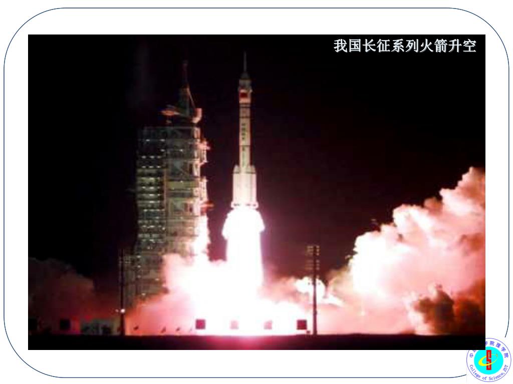 t+dt y t 问: 火箭是如何将地球气象卫星、载人航天飞船、深空宇宙探测器等航天飞行器送上太空的 ? 火箭依靠排出其内部燃烧室中产生的 气体来获得向前的推力 • 火箭飞行原理简介 设火箭发射时的质量为m0,速率为v0,燃料烧尽时的质量为m,气体相对于火箭排出的速率为u。不计空气阻力,求火箭所能达到的最大速率。