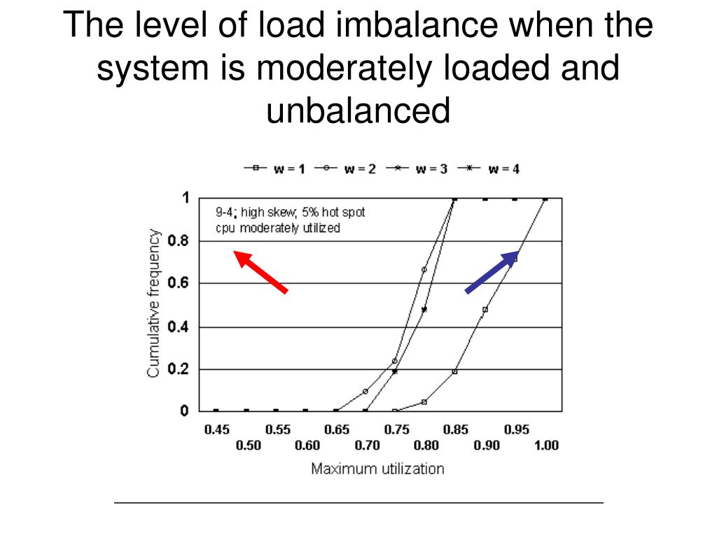 The level of load imbalance when the system is moderately loaded and unbalanced
