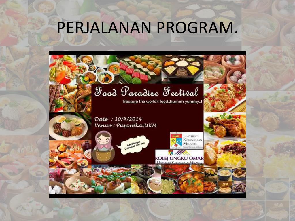 HP6: KEPIMPINAN DAN KERJA BERPASUKAN NAMA: SALEE A/P NOO CHAN NO.MATRIC: A143285 PROGRAM “FOOD PARADISE FESTIVAL”. PEMBENTANGAN AKHIR MELALUI VIDEO. (GIMIK). PERSEMBAHAN. PERJALANAN PROGRAM.