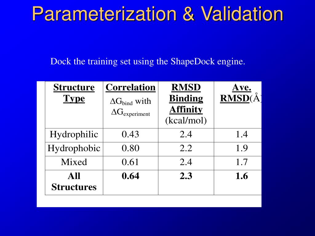 Parameterization & Validation Dock the training set using the ShapeDock engine.