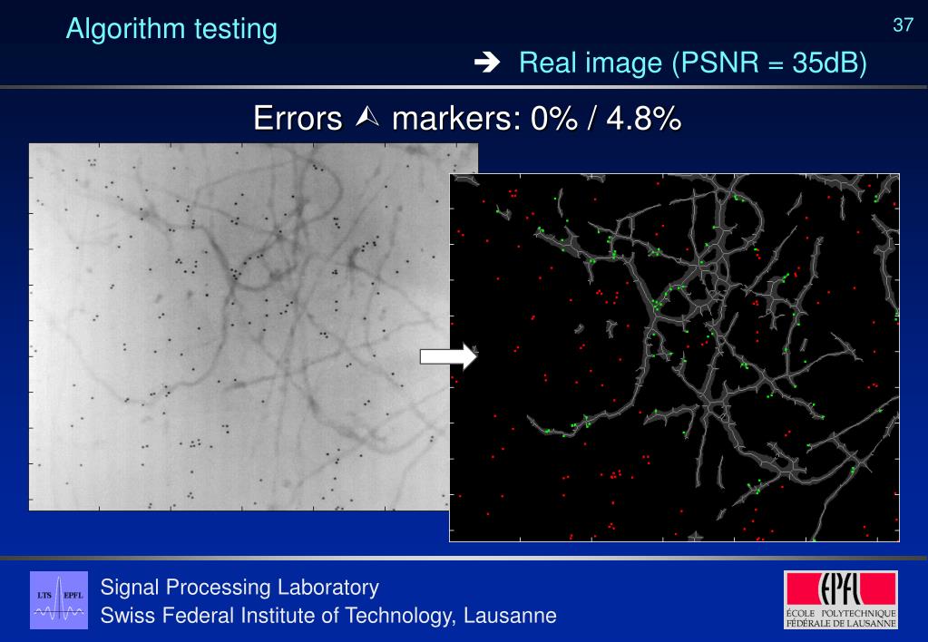 Algorithm testing Real image (PSNR = 35dB) Errors markers: 0% / 4.8%