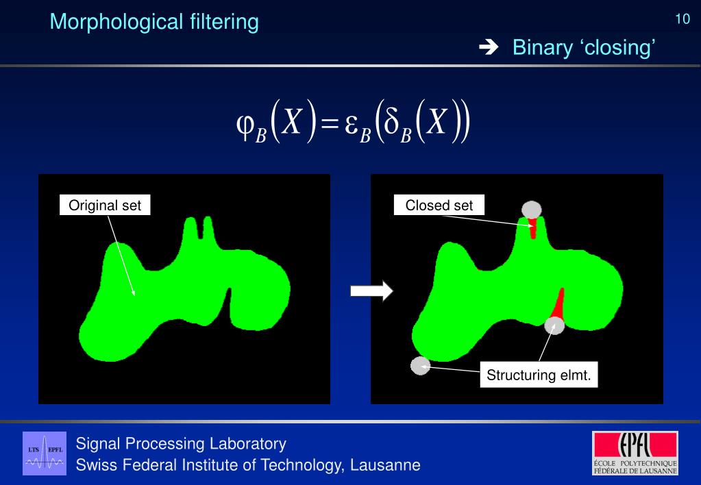 Original set Eroded set Structuring elmt. Morphological filtering Binary ‘erosion’