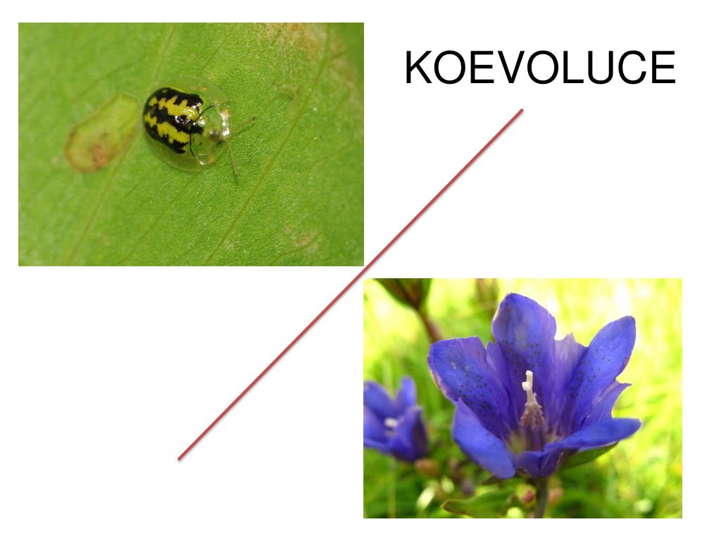 KOEVOLUCE • Evoluce dvou druhů může být výrazně ovlivněna symbiosou těchto druhů. • Koevoluce je jev, kdy se dva druhy během vývoje výrazně přizpůsobují fungování symbiosy. • Koevoluce parasita a hostitele • Koevoluce dvou mutualistů • Typickým projevem koevoluce jsou rychlé změny fenotypu.