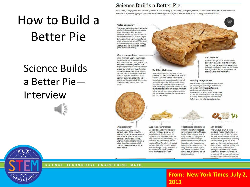 How to Build a Better Pie Science Builds a Better Pie—Interview From: New York Times, July 2, 2013