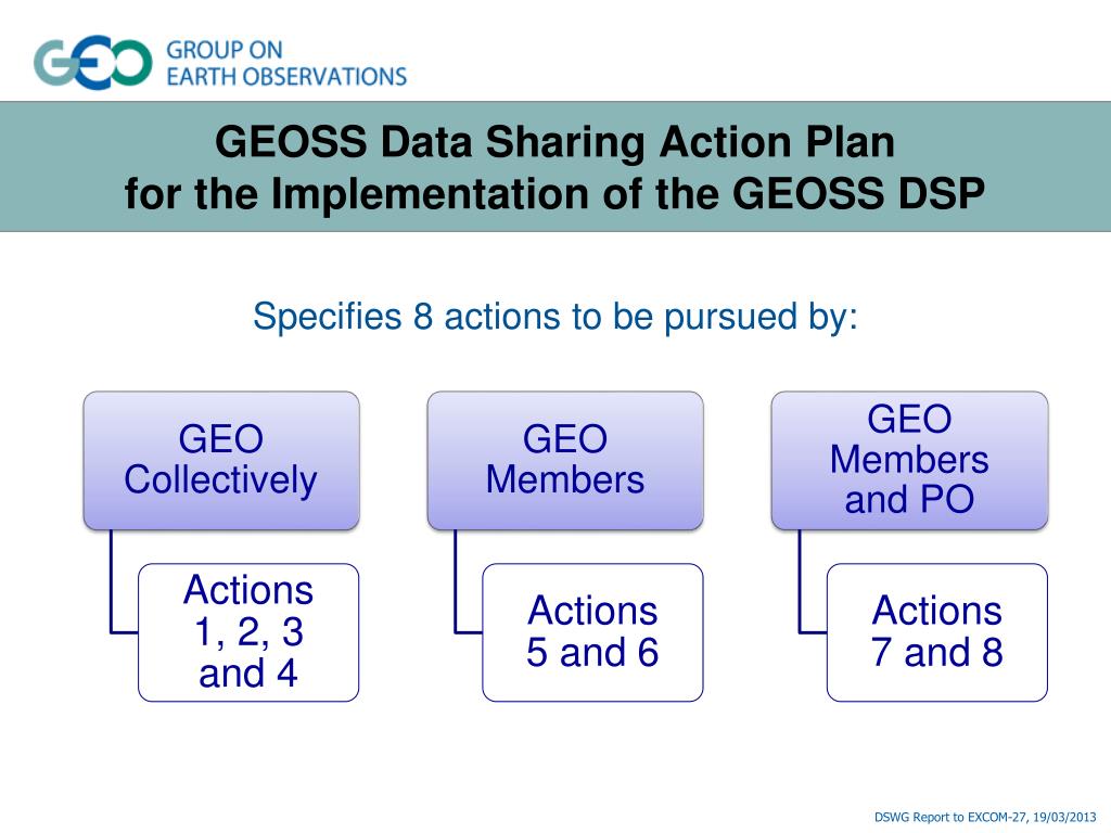 GEOSS Data Sharing Action Planfor the Implementation of the GEOSS DSP Specifies 8 actions to be pursued by: