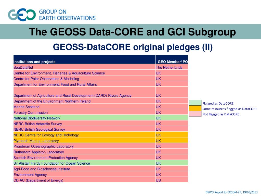 The GEOSS Data-CORE and GCI Subgroup GEOSS-DataCORE original pledges (II)