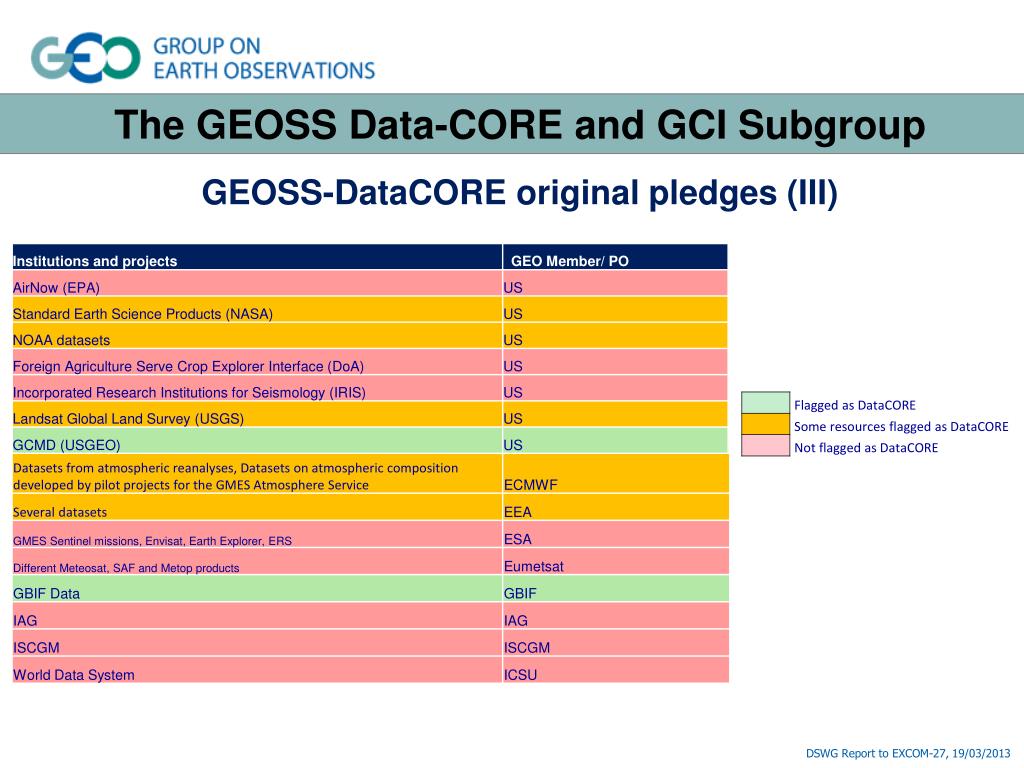 The GEOSS Data-CORE and GCI Subgroup GEOSS-DataCORE original pledges (III)