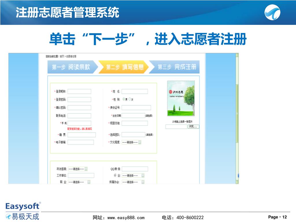 单击“下一步”,进入志愿者注册 注册志愿者管理系统