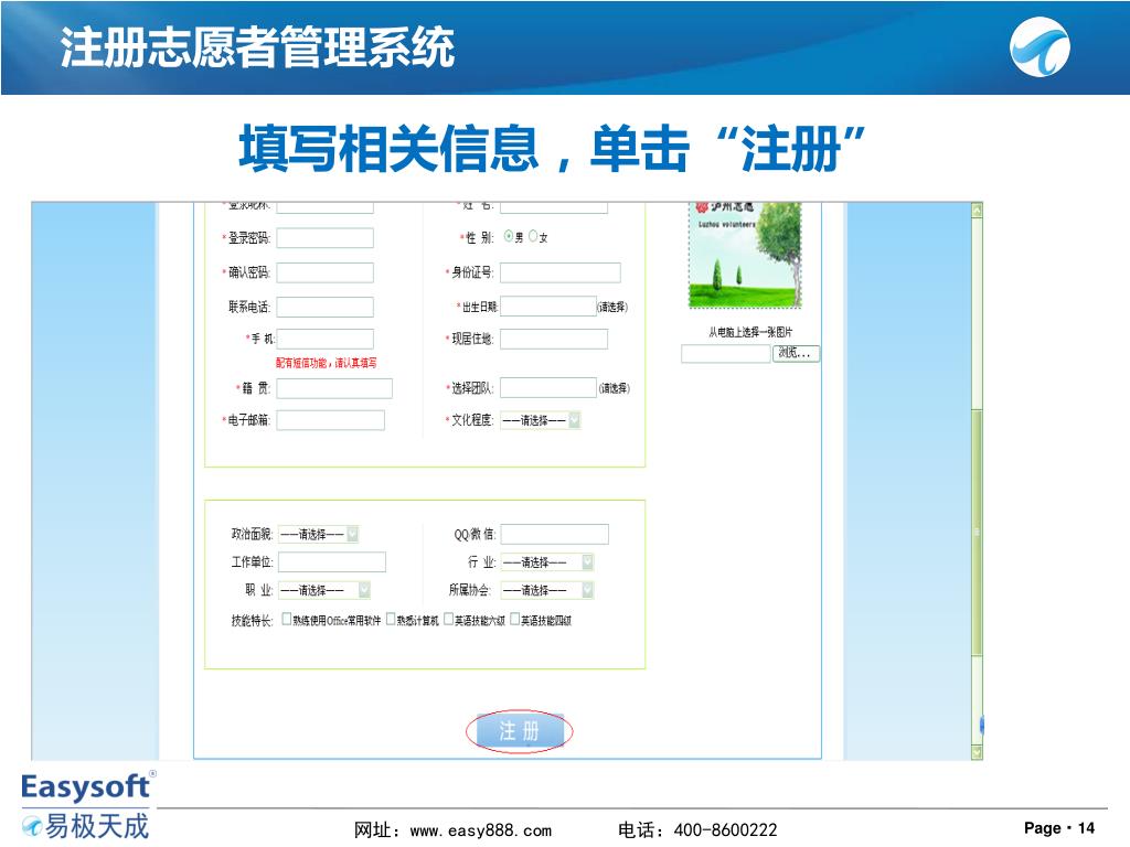 填写相关信息,单击“注册” 注册志愿者管理系统