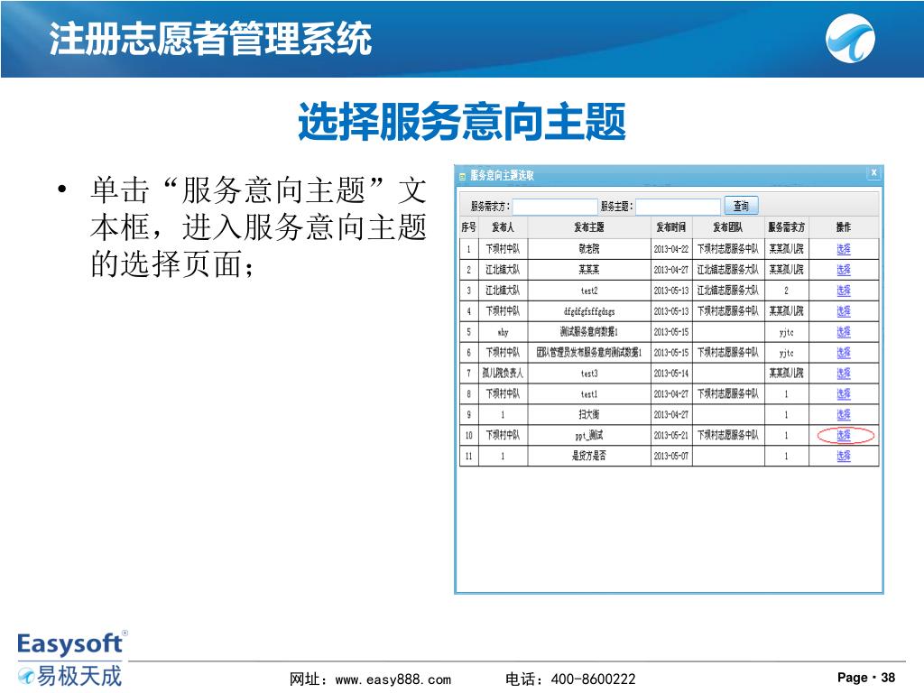 选择服务意向主题 注册志愿者管理系统 • 单击“服务意向主题”文本框,进入服务意向主题的选择页面;
