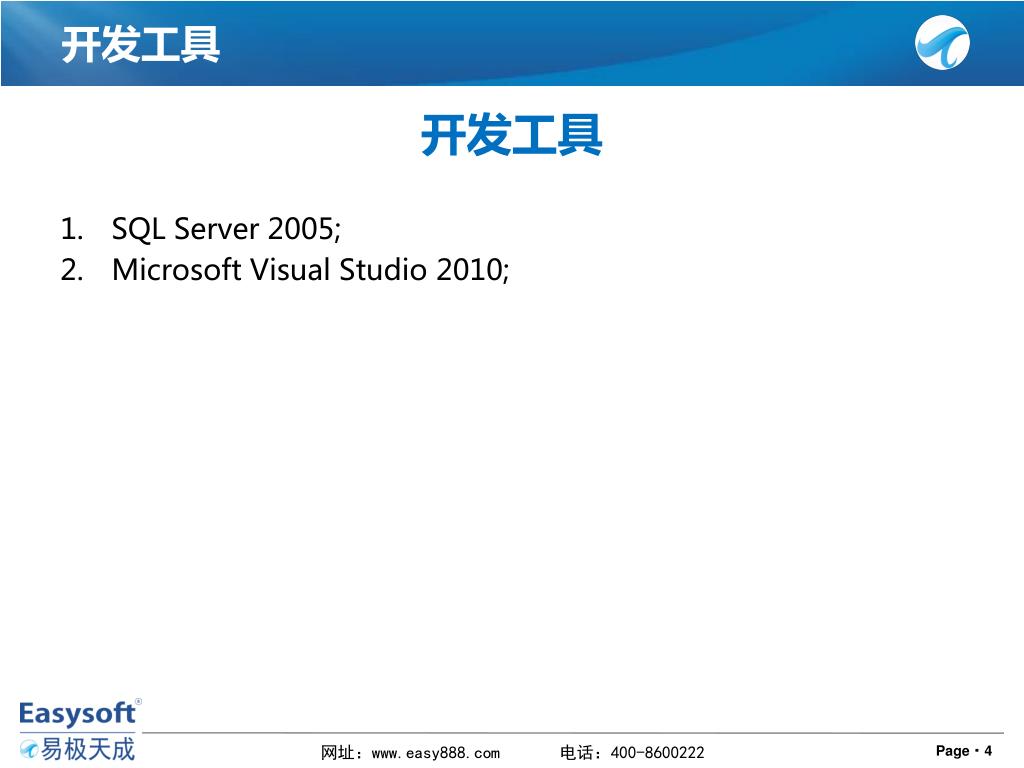 开发工具 开发工具 • SQL Server 2005; • Microsoft Visual Studio 2010;