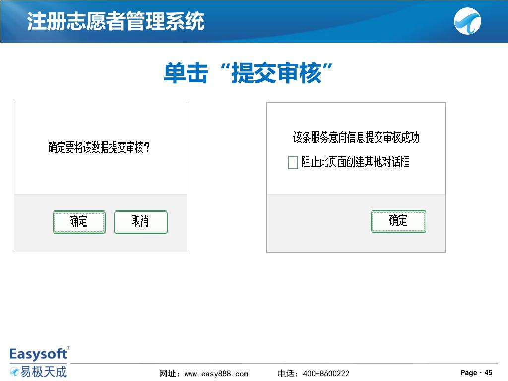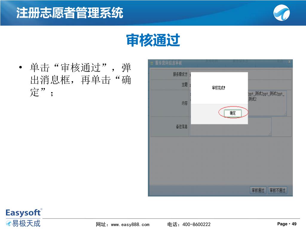 审核通过 注册志愿者管理系统 • 单击“审核通过”,弹出消息框,再单击“确定”;