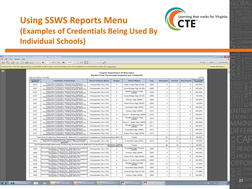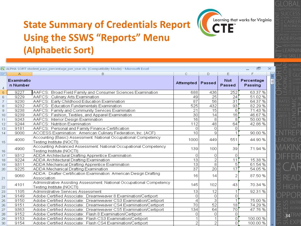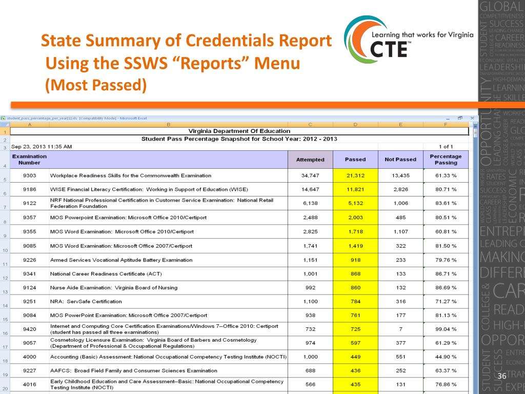 State Summary of Credentials Report Using the SSWS “Reports” Menu (Most Passed)
