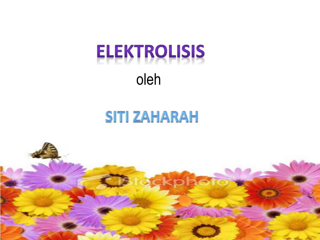 elektrolisis. oleh. siti zaharah. Materi. Definisi elektrolisis Reaksi-reaksi elektrolisis. Sel elektrolisis. Sel elektrolisis merupakan sel elektrokimia dimana terjadi perubahan energi listrik menjadi energi kimia. baterai. (oksidasi). (reduksi). Anoda . Katoda . +. -. Ion -.