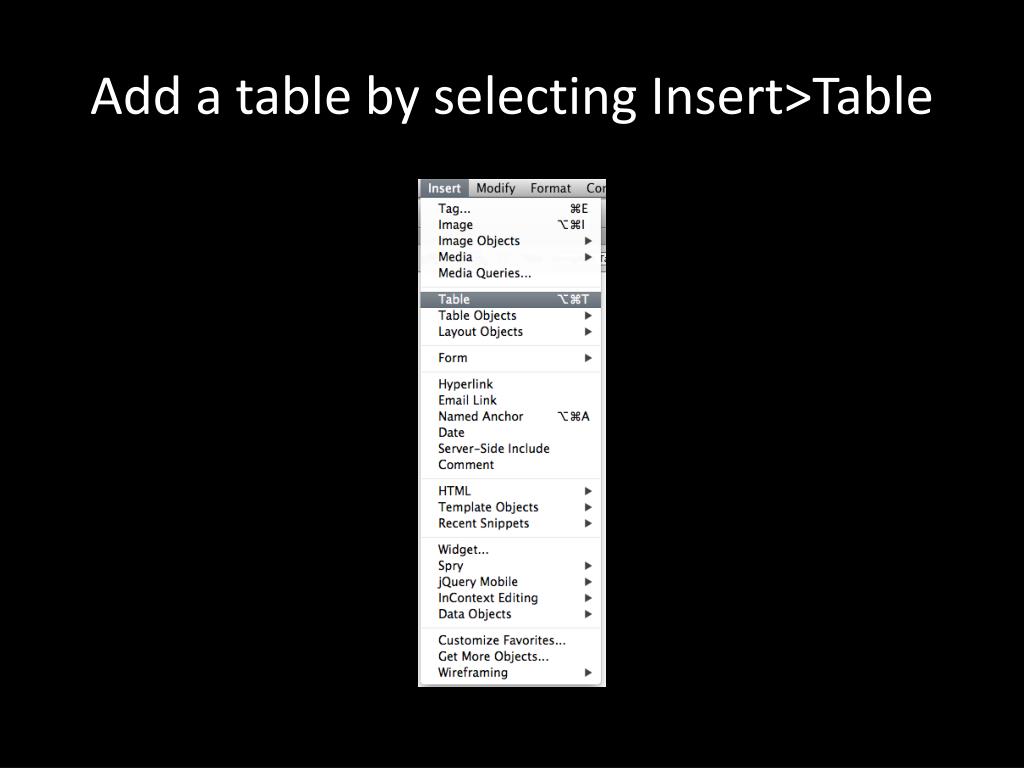 TO CREATE A TABLE LETS OPEN UP DREAMWEAVER