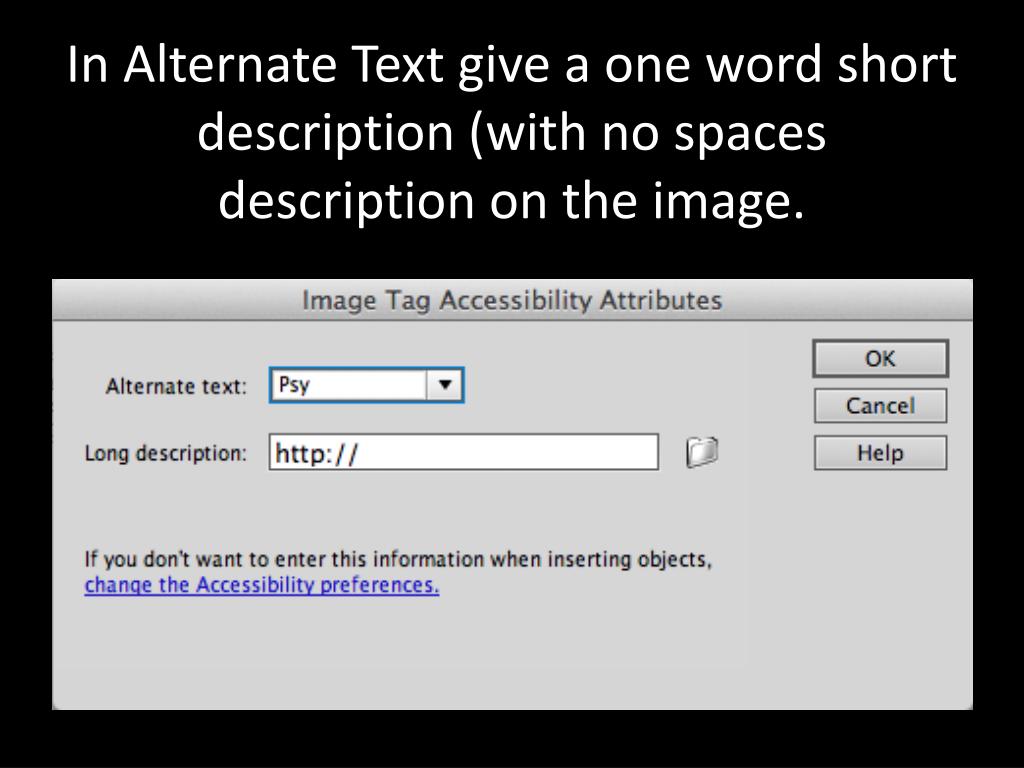 In Alternate Text give a one word short description (with no spaces description on the image.