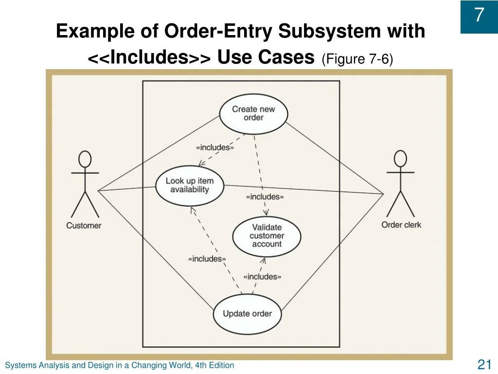 Example of Order-Entry Subsystem with <<Includes>> Use Cases(Figure 7-6) Systems Analysis and Design in a Changing World, 4th Edition