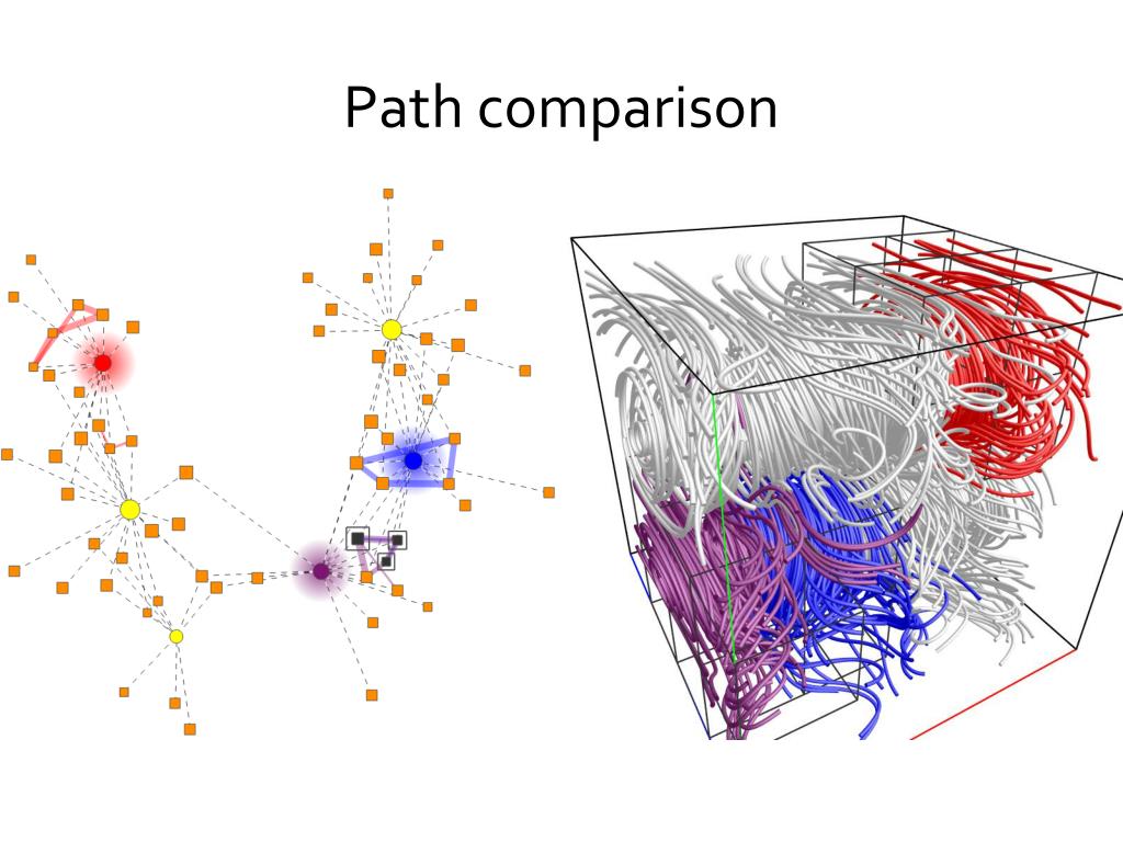 Flow Web [Xu and Shen 2010] Nodes are spatial regions that are hierarchically organized Edges indicate the number of particles traveling in between Do not store information about streamline clusters Queries such as identifying streamline bundles become a trial-and-error process Our FlowGraph Explicitly store information about streamline clusters Extend Flow Web to a compound graph representation Allow full exploration of streamline clusters, spatial regions and their interconnections Flow Web vs. FlowGraph