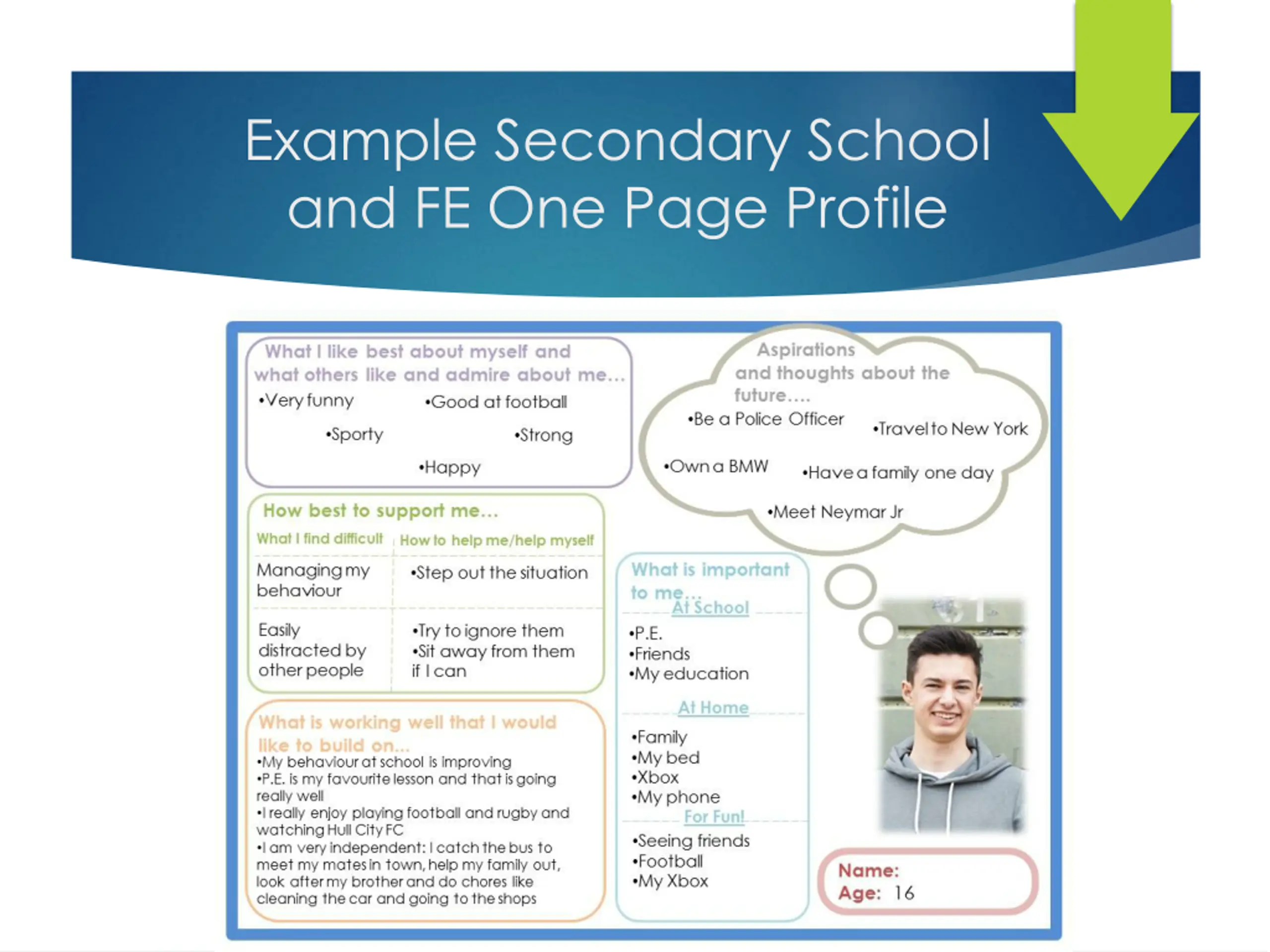 Example Secondary School and FE One Page Profile