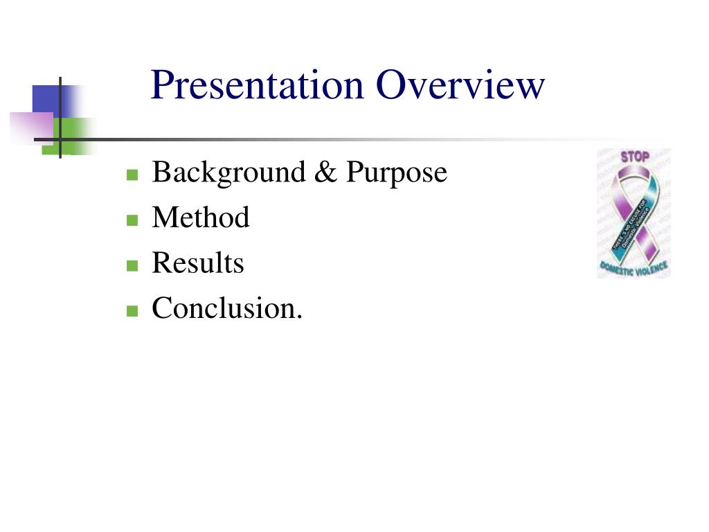 Presentation Overview Background & Purpose Method Results Conclusion.
