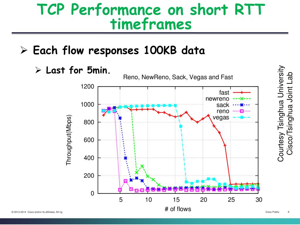 TCP Performance on short RTT timeframes • Each flow responses 100KB data • Last for 5min. Courtesy Tsinghua University Cisco/Tsinghua Joint Lab