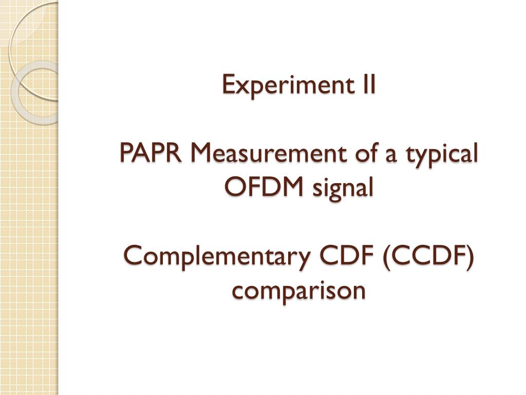 Experiment IIPAPR Measurement of a typical OFDM signalComplementary CDF (CCDF) comparison