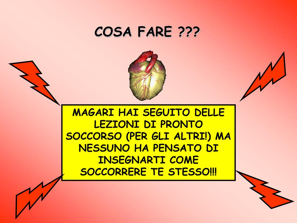 COSA FARE ??? MAGARI HAI SEGUITO DELLE LEZIONI DI PRONTO SOCCORSO (PER GLI ALTRI!) MA NESSUNO HA PENSATO DI INSEGNARTI COME SOCCORRERE TE STESSO!!!