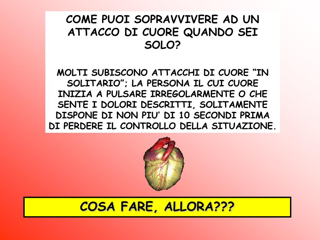 COME PUOI SOPRAVVIVERE AD UN ATTACCO DI CUORE QUANDO SEI SOLO? MOLTI SUBISCONO ATTACCHI DI CUORE “IN SOLITARIO”; LA PERSONA IL CUI CUORE INIZIA A PULSARE IRREGOLARMENTE O CHE SENTE I DOLORI DESCRITTI, SOLITAMENTE DISPONE DI NON PIU’ DI 10 SECONDI PRIMA DI PERDERE IL CONTROLLO DELLA SITUAZIONE. COSA FARE, ALLORA???