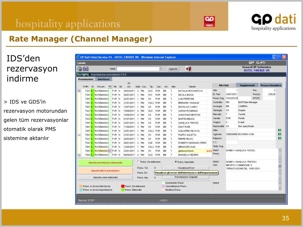 Rate Manager (Channel Manager) IDS’den rezervasyon indirme • > IDS ve GDS’in rezervasyon motorundan gelen tüm rezervasyonlar otomatik olarak PMS sistemine aktarılır