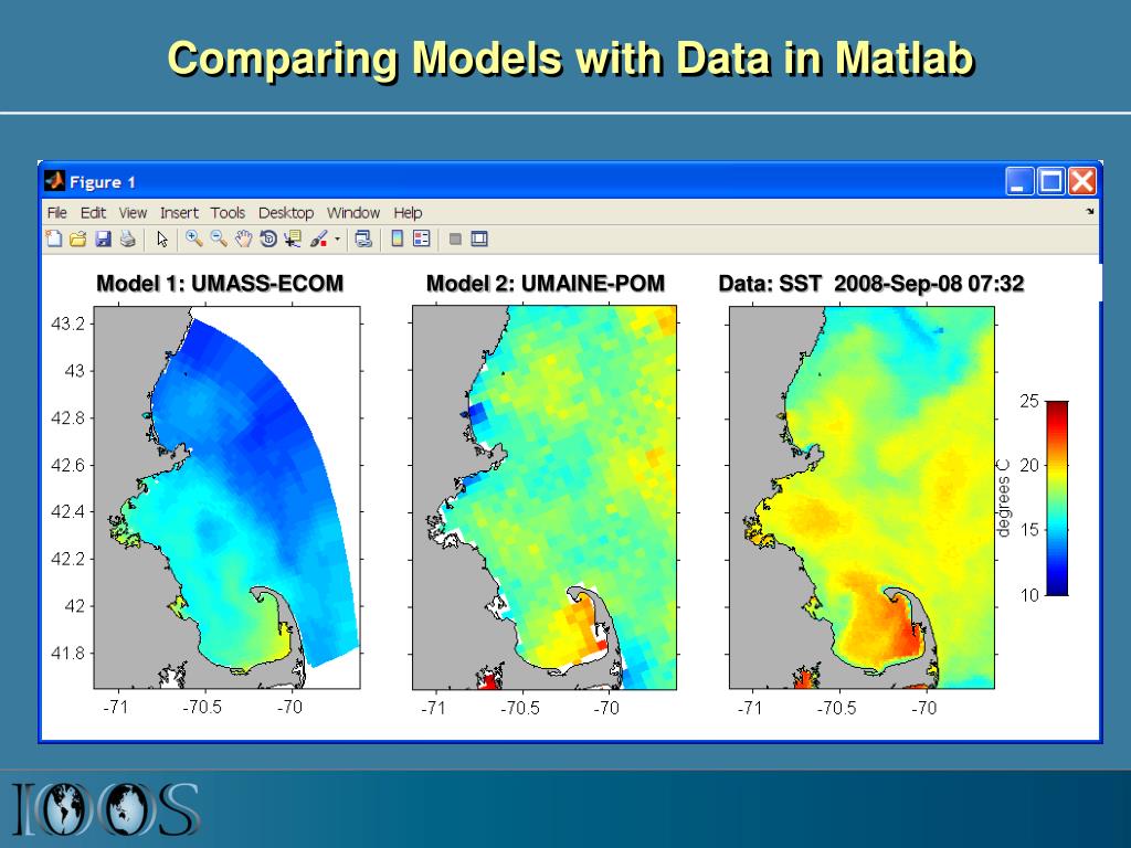 Comparing Models with Data in Matlab Model 1: UMASS-ECOM Model 2: UMAINE-POM Data: SST 2008-Sep-08 07:32