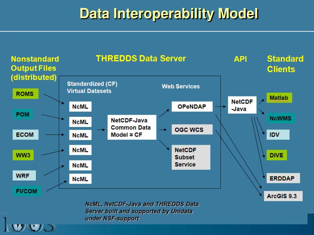 Mapping services and browse application • Cyberinfrastructure (CI)All Regions – All Teams • Extending CI from OGC, Unidata and others (NOAA DMIT, USGS CDI) to support unstructured grids, and add functionality • Web Access via OpenDAP w/CF • Unidata Common Data Model/NetCDF Java Library API • Distributed search capability • Browser based map viewer (WMS) • Toolbox for scientific desktop analysis • All components standards-based! Search services Analyze in scientific desktop application