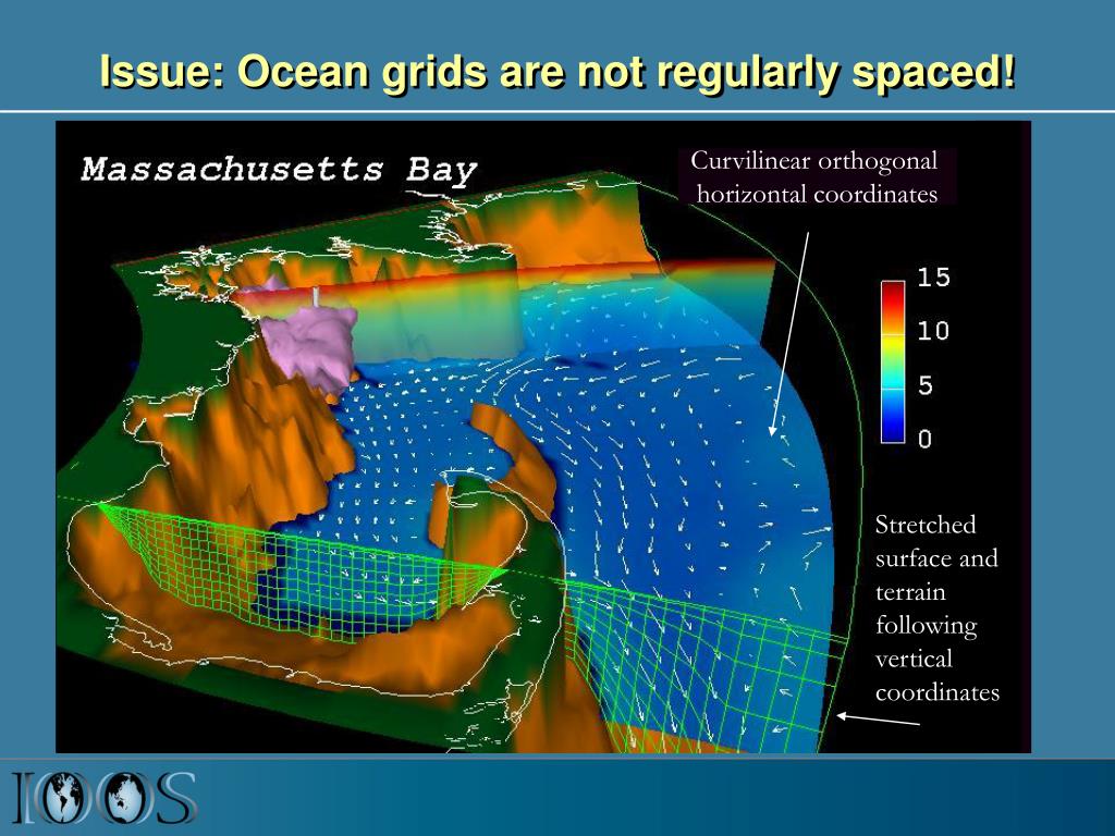 Issue: Ocean grids are not regularly spaced! Curvilinear orthogonal horizontal coordinates Stretched surface and terrain following vertical coordinates