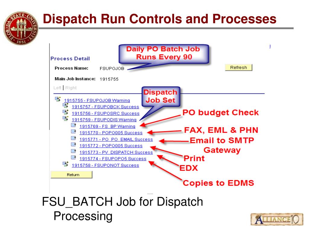 Dispatch Run Controls and Processes FSU_BATCH Job for Dispatch Processing