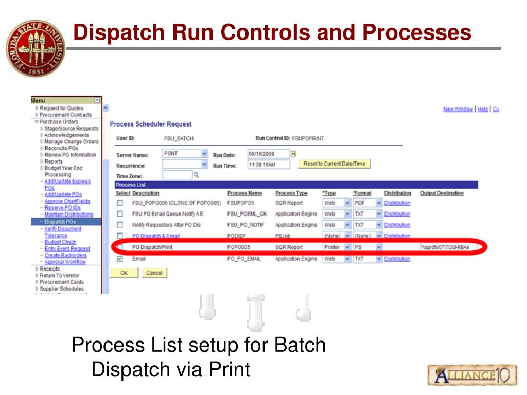 Dispatch Run Controls and Processes Process List setup for Batch Dispatch via Print