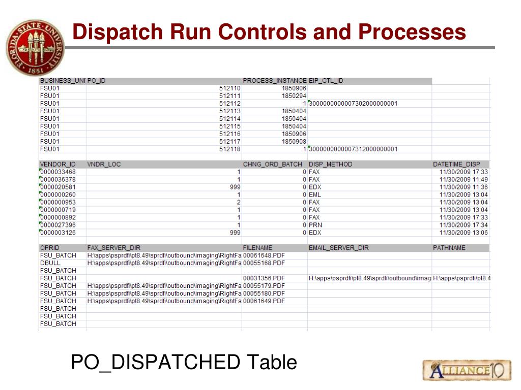 Dispatch Run Controls and Processes PO_DISPATCHED Table