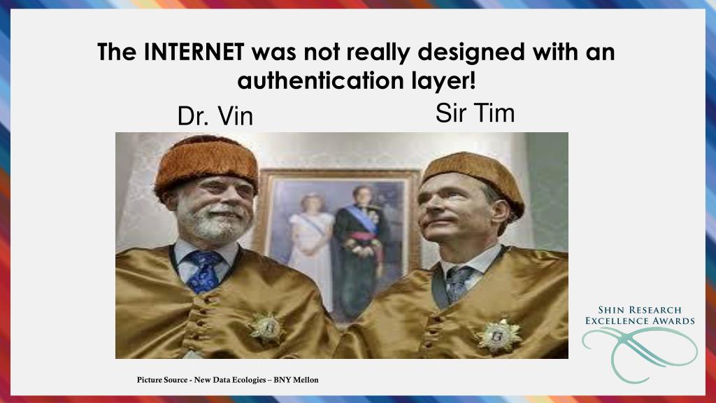 The INTERNET was not really designed with an authentication layer! Sir Tim Dr. Vin Picture Source - New Data Ecologies – BNY Mellon