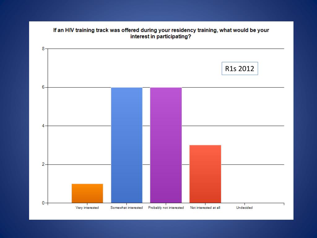 FMRI HIV Training Track : Evaluation • Immediate preceptor feedback is given on each patient presentation by FM/HIV faculty. • Clinical and inpatient core competencies reviewed, learned, demonstrated, and checked off. • Continuous tracking of step-wise completion of HIV curriculum modules. • Bi-annual evaluations by the HIV training Track Director and HIV care team (nurses, pharmacists, social workers).