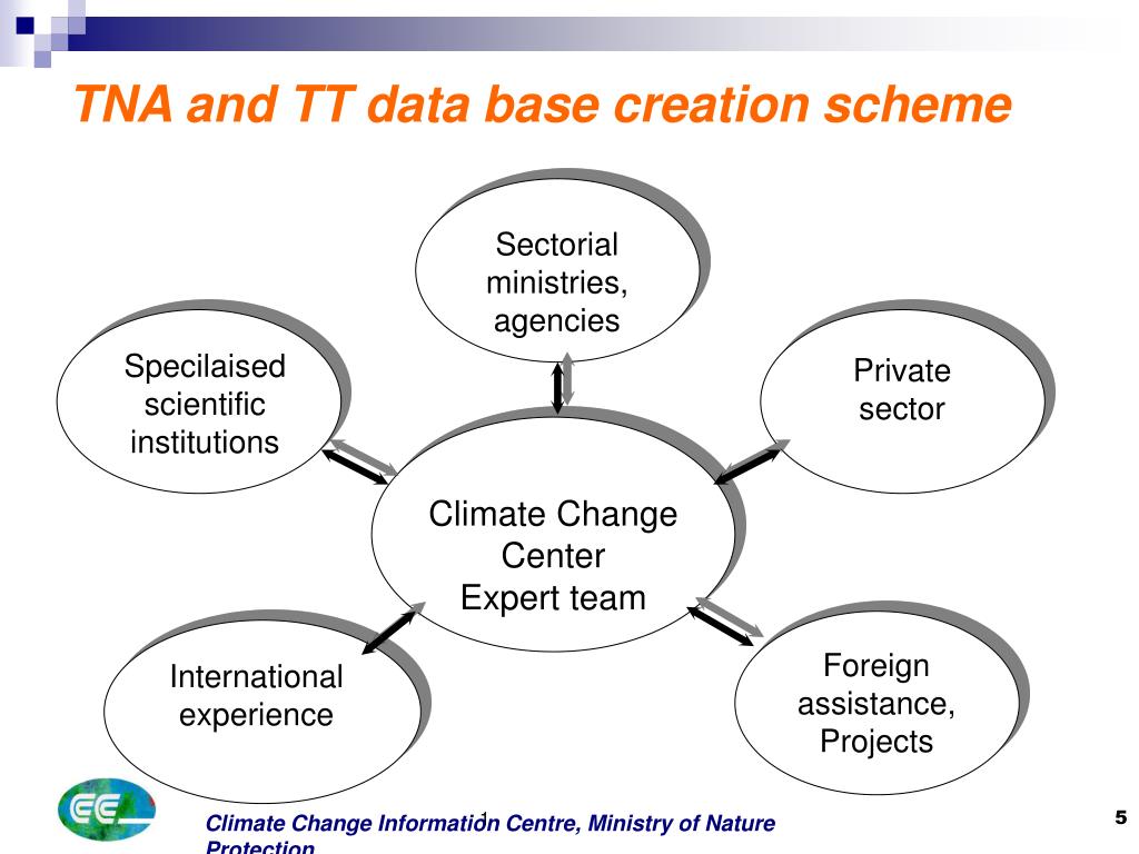 Sectorial ministries, agencies Specilaised scientific institutions Foreign assistance, Projects Climate Change Center Expert team Private sector TNA and TT data base creation scheme International experience 1