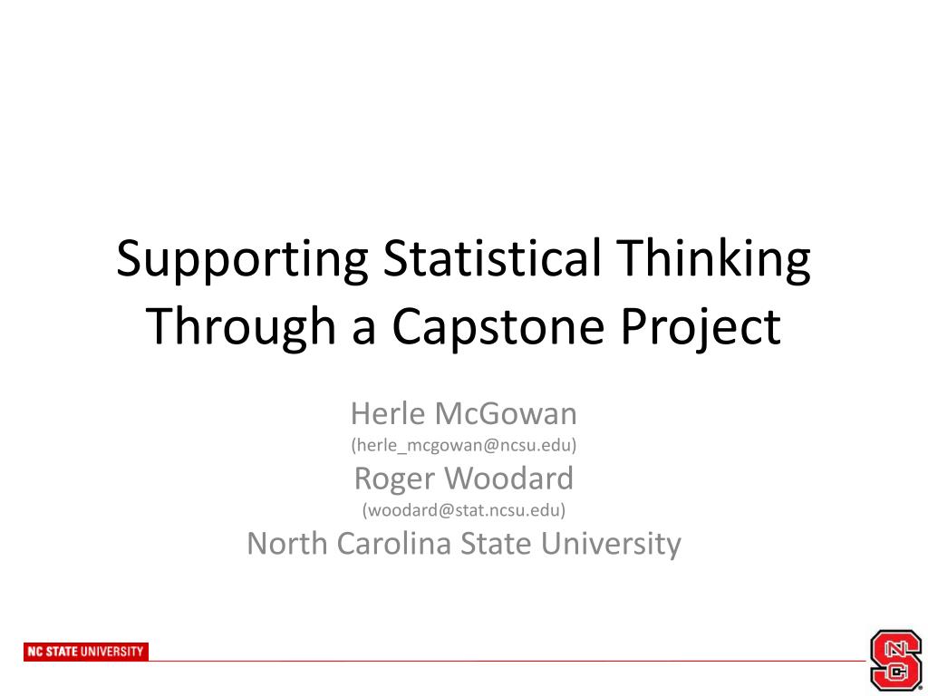 Supporting Statistical Thinking Through a Capstone Project Herle McGowan (herle_mcgowan@ncsu.edu) Roger Woodard (woodard@stat.ncsu.edu) North Carolina State University