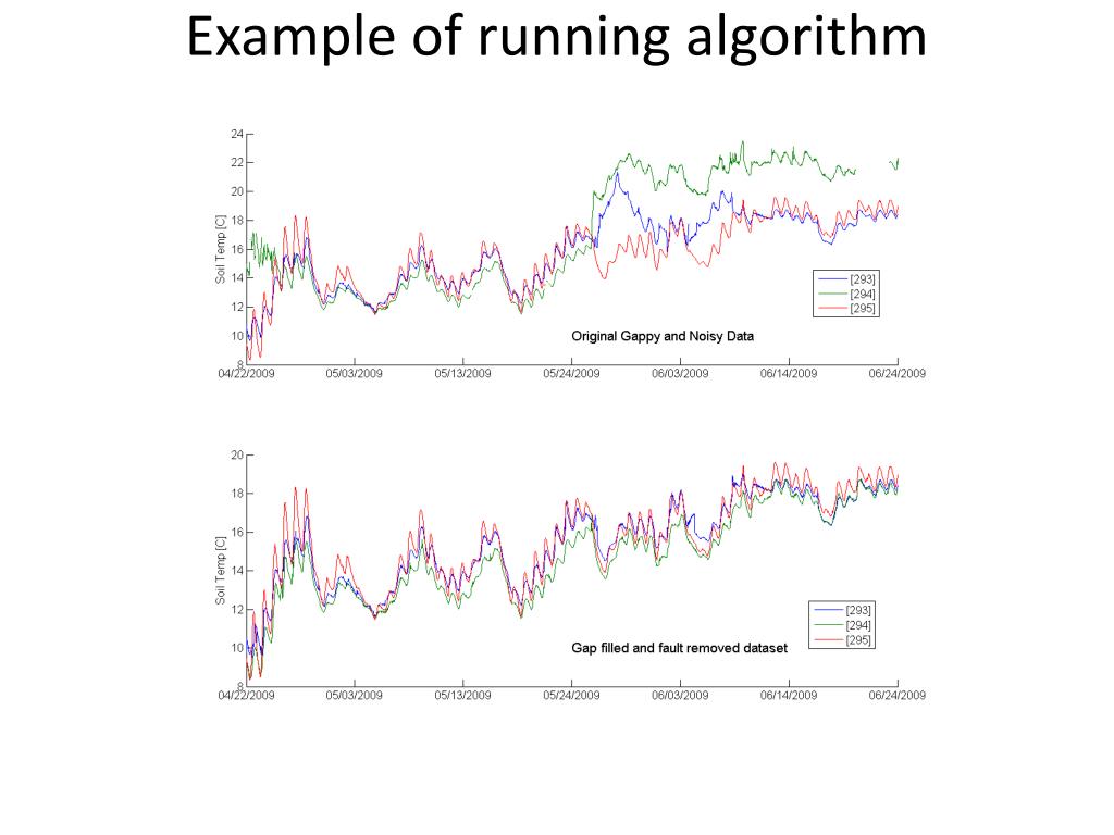 Locations. Soil Temperature Dataset. Observations. Data is Correlated in time and space Evolving over time (seasons) Gappy (Due to failures) Faulty (Noise, Jumps in values). Temporal Gap Filling. Data is correlated in the temporal domain Data shows Diurnal patterns Trends