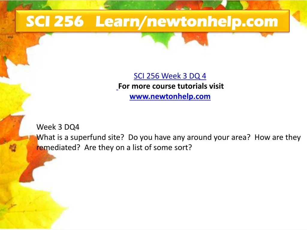 SCI 256 Learn/newtonhelp.com SCI 256 Entire Course (New) For more course tutorials visit www.newtonhelp.com SCI 256 Week 1 Individual Assignment Environmental Science Worksheet (New) SCI 256 Week 1 DQ 1 SCI 256 Week 1 DQ 2