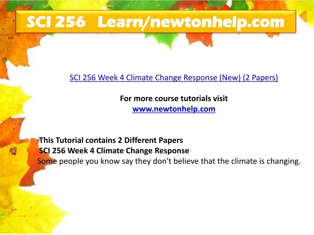 SCI 256 Learn/newtonhelp.com SCI 256 Week 4 Climate Change Response (New) (2 Papers) For more course tutorials visit www.newtonhelp.com This Tutorial contains 2 Different Papers SCI 256 Week 4 Climate Change Response Some people you know say they don't believe that the climate is changing.