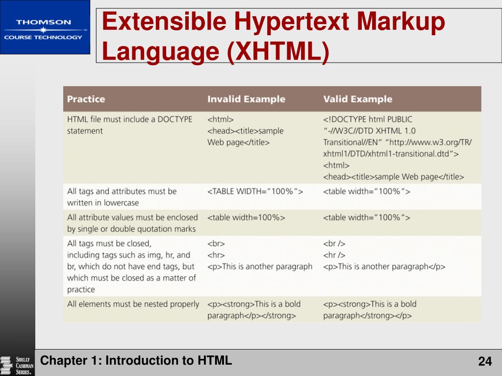 Extensible Hypertext Markup Language (XHTML) Project 1: Introduction to HTML Chapter 1: Introduction to HTML 24