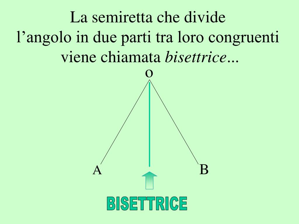 La semiretta che divide l’angolo in due parti tra loro congruenti viene chiamata bisettrice... o B A BISETTRICE