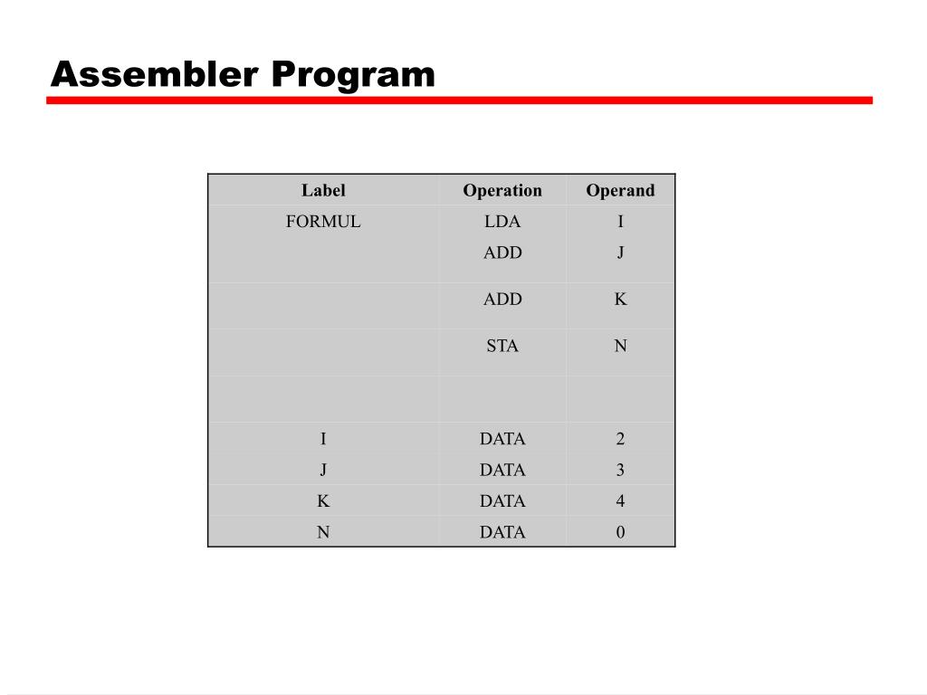 Symbolic Addresses • First field (address) now symbolic • Memory references in third field now symbolic • Now have assembly language and need an assembler to translate • Assembler used for some systems programming • Compliers • I/O routines