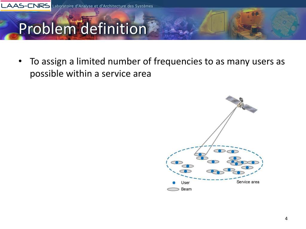 Frequency assignment for satellite communication systems Kata KIATMANAROJ Supervisors: Christian ARTIGUES, Laurent HOUSSIN. Contents. Problem definition Current state of the art Contributions Conclusions and perspectives. Problem definition. Problem definition.